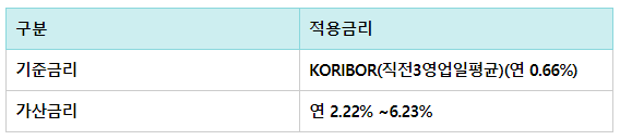 대출금리는 기준금리와 가산금리를 더해 결정되며, 우대금리를 적용받으면 최저 2.38% 금리로 대출이 가능합니다.
