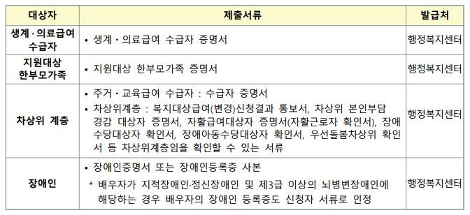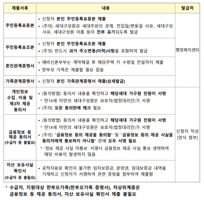 신청접수 후 서류심사 대상자가 발표되면 주소지 관할구역을 참조하여 서류를 제출 할 수 있습니다. 제출서류와 장소가 궁금하신분들은 아래의 더보기를 통해 확인 할 수 있습니다.